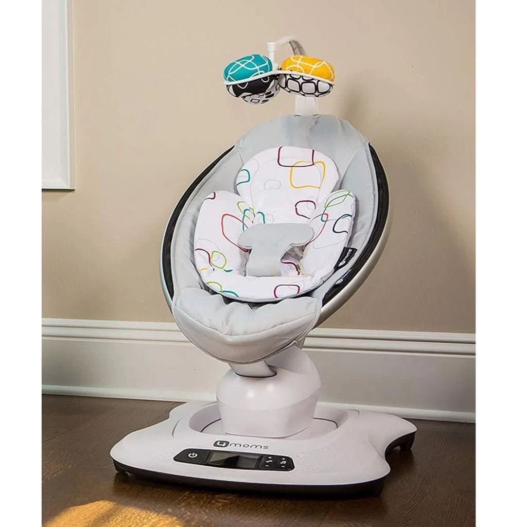 The reversible 4moms Newborn Insert features a multi-colored plush fabric on one side, and a silver plush fabric on the other. It fits perfectly with all 4moms mamaRoo, 4moms rockaRoo, and 4moms bounceRoo infant seats, and provides additional comfort and support for your newborn. The soft, plush newborn insert is machine-washable.