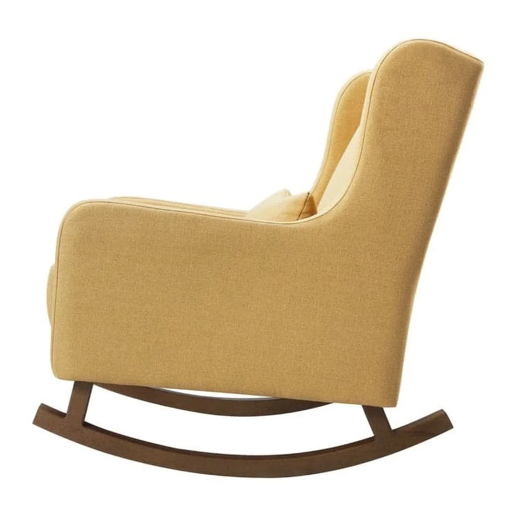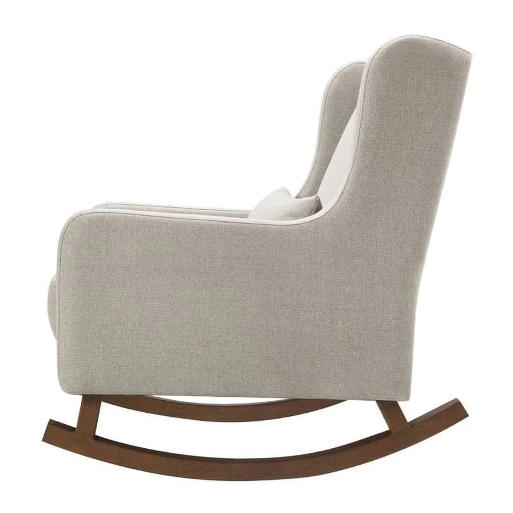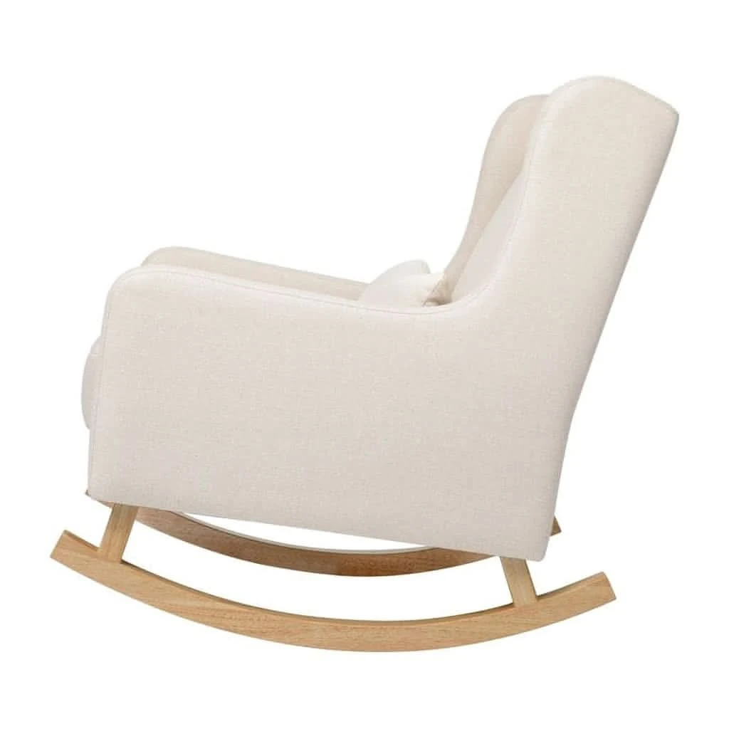 Take a moment to relax in the charming mid-century styled Kai Rocking Chair. Designed with modern rounded edges, curved rubberwood legs, and included lumbar cushion for added comfort. It’s a stylish but also more sustainable choice for the modern nursery. Upholstered by hand in Babyletto eco-performance fabric, that is stain resistant, water repellent, and made with at least 30% recycled fibers.