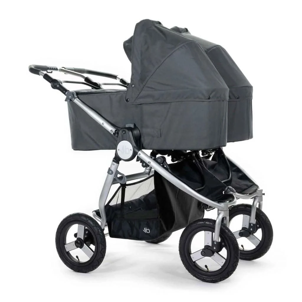 The BUMBLERIDE Indie Twin Bassinet provides a lie-flat bed for infants using 100% recycled polyester fabric, a vented base and breathable mattress. Latching easily onto Indie Twin, this lie-flat bed converts your stroller into a parent facing pram. Featuring a large UPF45+ canopy with pop out extension, zip on wind cover and one-handed carrying handle.The Indie Twin can accommodate two bassinets at the same time.