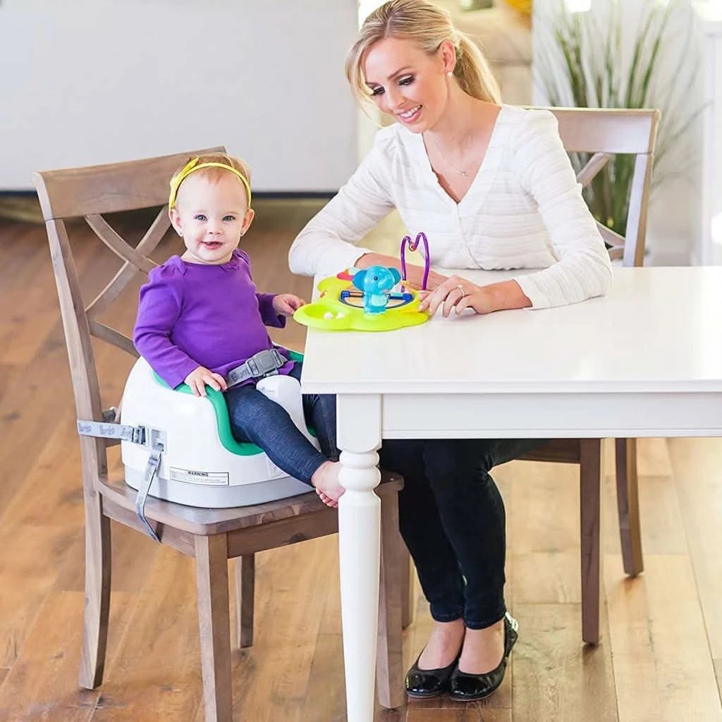 Bumbo Playtop Safari Activity Tray is a quick and easy way to keep your little one entertained whilst using their Bumbo Seat. It includes suction cups that will stick to any smooth surface and tabs for quick and easy removal. Full of fun, this activity tray features a bead maze, flip book, cup/snack holder, rotating ball, and elephant toy with rotation and clicking functionality.