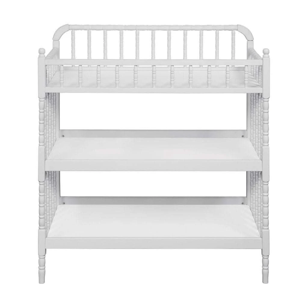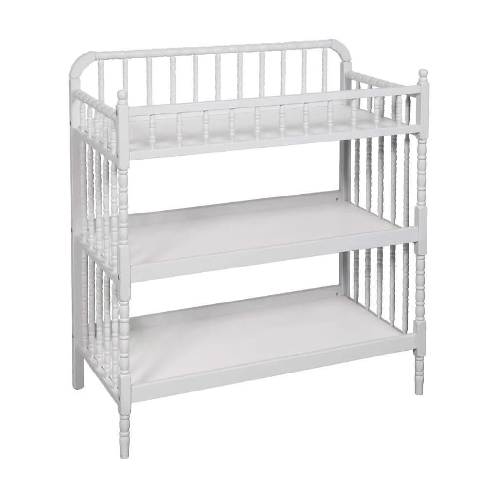 Delight in traditional beauty with the DaVinci’s Jenny Lind Changing Table. Intricate spindle posts deliver classic grace from top to toe, for a perfect pairing with the Jenny Lind Crib. Spacious, open shelves keep diapers and lotions within easy reach for convenient changings. Coordinates with the Jenny Lind 3-in-1 Convertible Crib.