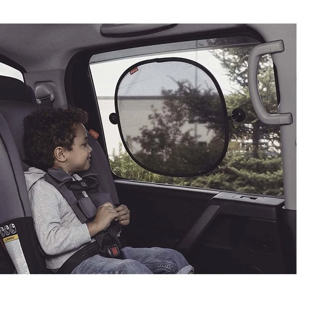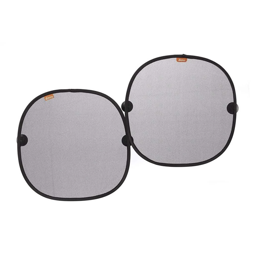 The Diono Sun Stopper Double Pack is the perfect combination. Whether front or rear facing, the solar mesh panels protect from direct sun and reflected glare, keeping little travelers cooler and more comfortable. The ‘pop-open’, design aids a quick and easy installation, the suction cups attach securely to most vehicle side/rear windows, while not inhibiting the view to the outside. Sun Stoppers are simple to remove, and conveniently fold flat to store in the back-seat pocket or in your trunk. We’ve thought of everything so you don’t have to.