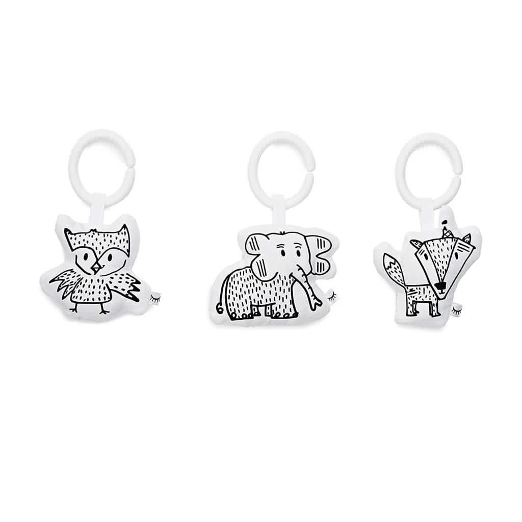 Not your average baby toys, these DockATot Deluxe+ Dock Toy Set cool and quirky dangling creatures to bring a downtown, modern vibe to your baby’s world. The three crinkly black and white toys promote sensory development. In collaboration with New York artist Matthew Langille.