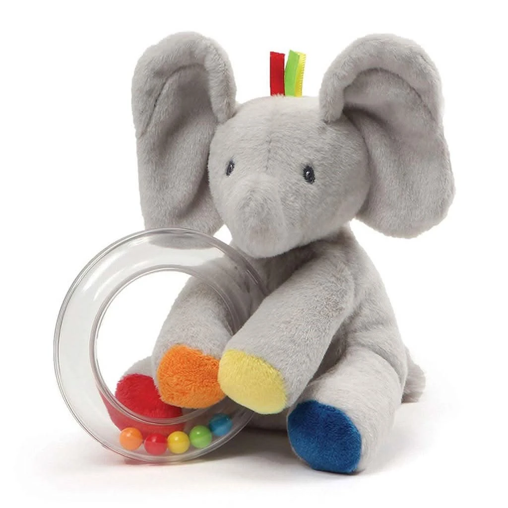 GUND Flappy Elephant Rattle is proud to present a new way to play with Flappy. This cute 5″ plush rattle version of everyone’s favorite elephant is the perfect size for little hands and sure to keep the baby engaged during play with sensory stimulating colorful feet and beads. Machine washable for easy cleaning. Appropriate for all ages.