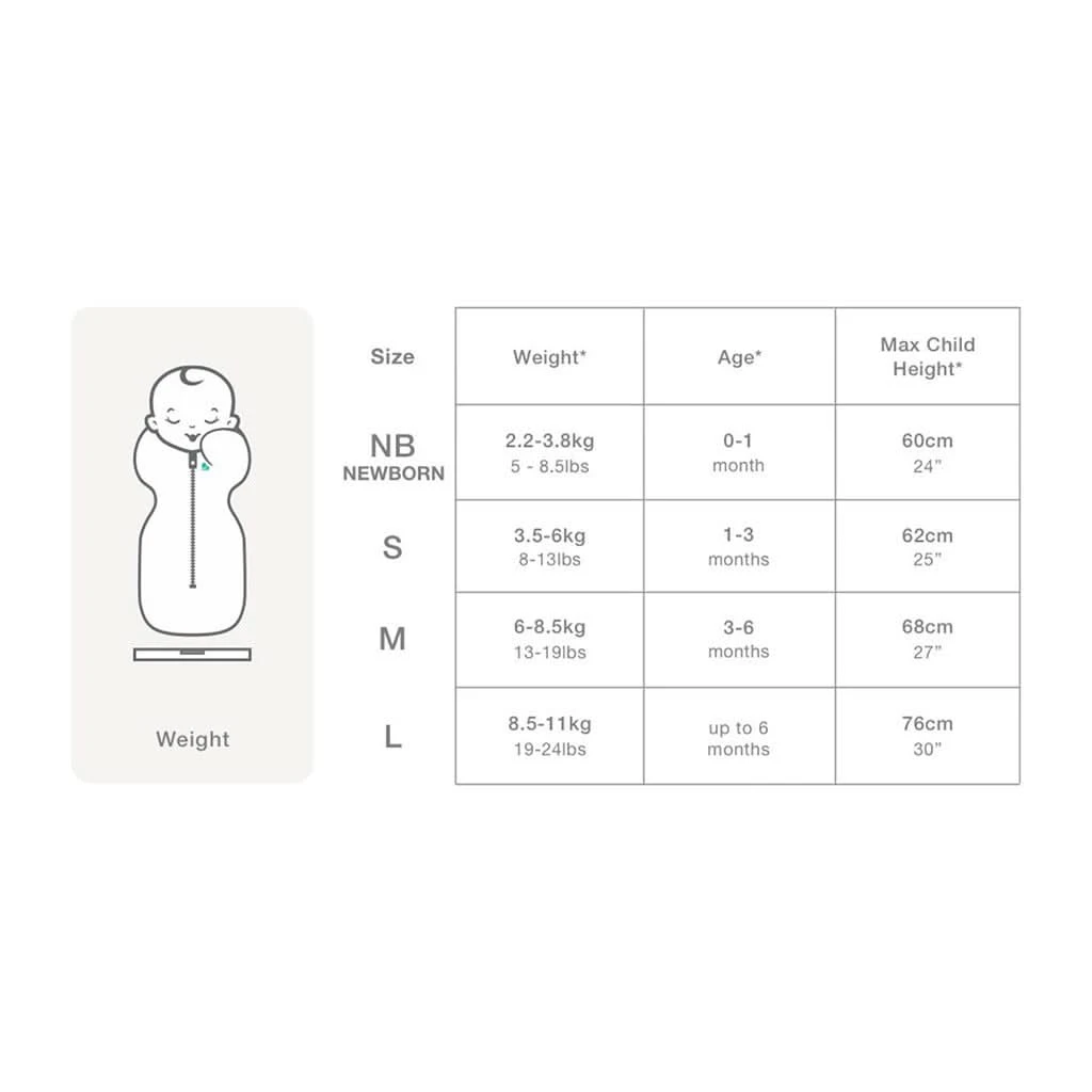 This lightweight swaddle features a sleek, modern aesthetic and comes in sizes Newborn, Small, and Medium. It has no loose layers, helping reduce risks during sleep, and is acknowledged as hip-healthy by the International Hip Dysplasia Institute. The silky fabric feels luxuriously smooth and pairs well with Love To Dream™ sleep and play layers. It is compatible with indoor temperatures ranging between 68°F and 75°F and is machine washable and dryer safe for easy care.