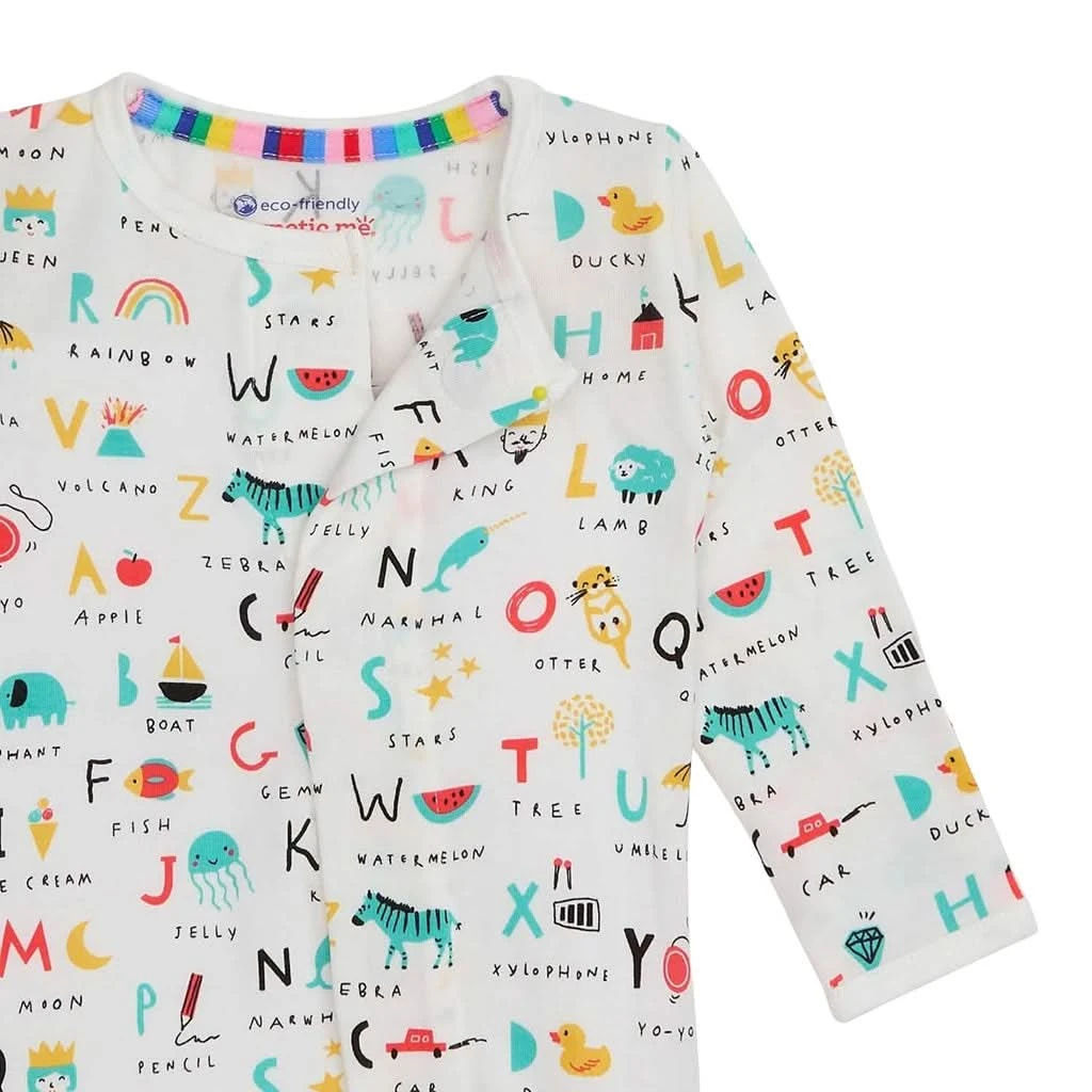 The Magnetic Me ABC Love Modal Magnetic Footie is an essential item for parents who want to simplify the dressing process while keeping their babies comfortable and stylish. Perfect for newborns and toddlers, this footie is designed with SewSafe™ magnetic closures that make dressing quick, quiet, and stress-free, especially during those late-night diaper changes. Made from eco-friendly TENCEL™ modal, this footie is soft, breathable, and gentle on sensitive skin, offering year-round comfort by regulating body temperature—keeping your baby warm in the winter and cool in the summer.