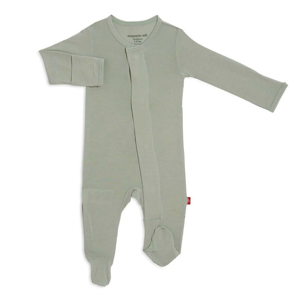 Magnetic Me Sea Foam Modal Magnetic Footie is the parent’s favorite footie an everyday (and night) essential with magnetic closures that make dressing easy. magnets are quick, quiet, and a lifesaver for middle-of-the-night changes. eco-friendly TENCEL™ modal is silky soft, breathable, and gentle on sensitive skin. temperature-regulating properties will keep warm in winter, cool in summer, and oh-so-comfortable year round.
