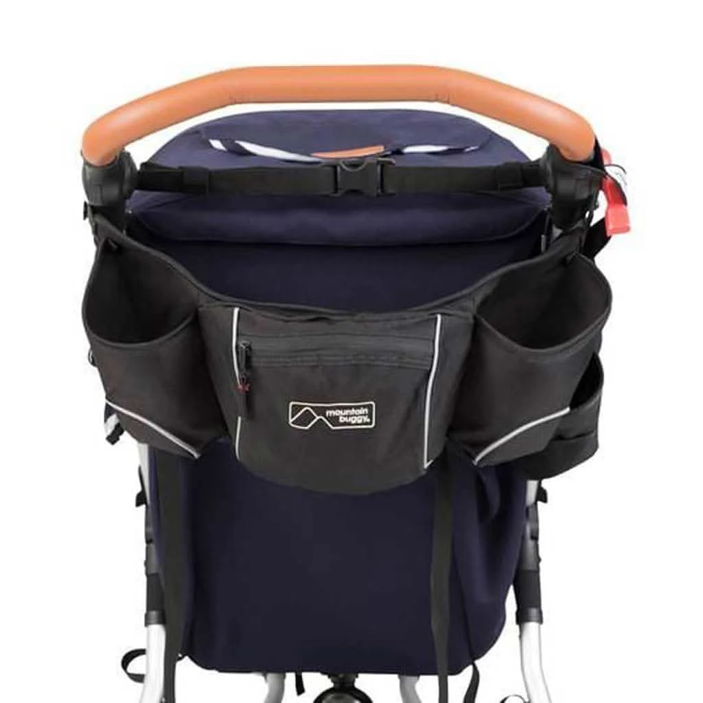 Additional storage at your fingertips! This Mountain Buggy hang bag fits over your stroller handle for all your baby essentials including two water bottles, keys, phones, wallets, pacifiers and more! Mounts directly onto your stroller handle of any single stroller, plus the duet. Zip away storage for wallets and keys, plus two pockets for bottles.