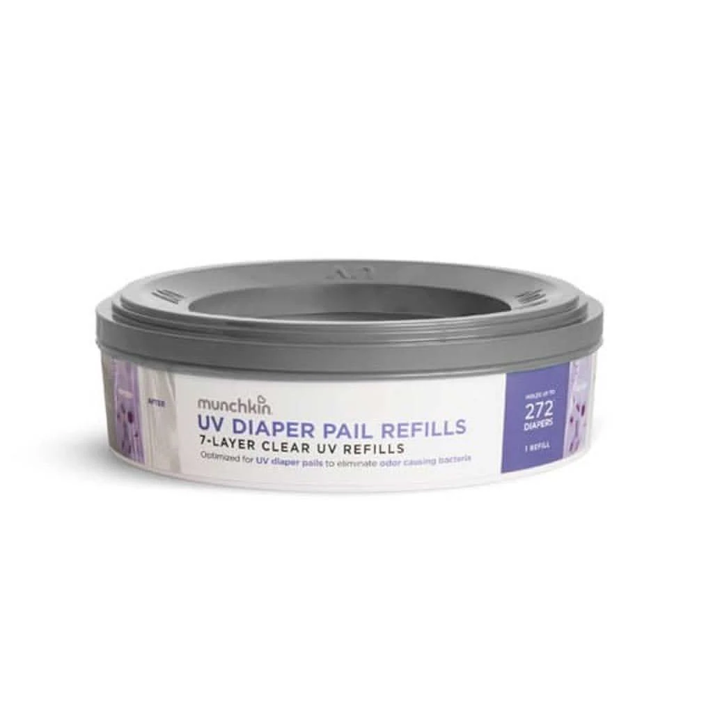 Don’t make a big stink about dirty diapers! Designed for use with Munchkin UVC Diaper Pail Refill Rings, 2-Pack, these refill rings maximize the transmission of UV light through the film to control odor and germs. Seven-layer construction further helps to keep smells contained and provides enough room to hold 272 diapers per ring. Includes two refill rings.