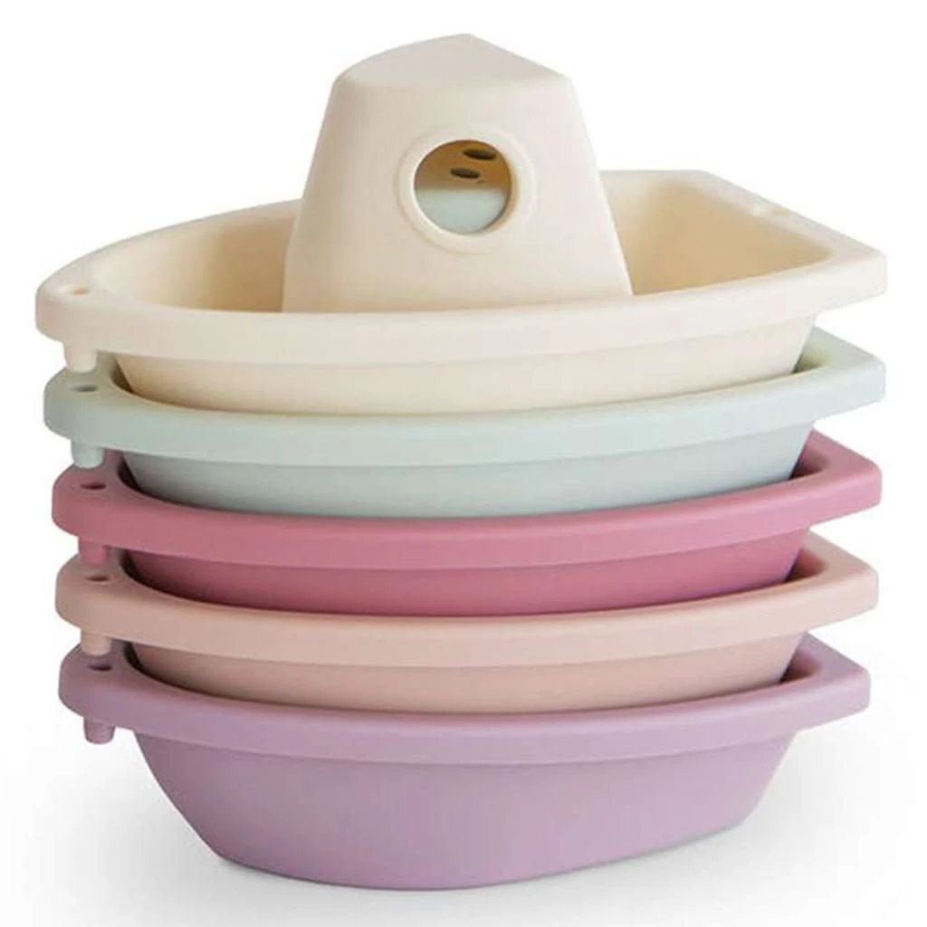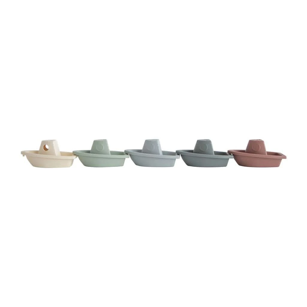 The Mushie Bath Boats Set is designed to inspire imaginative play while helping children develop fine and gross motor skills. Perfect for independent play, these stackable bath boats come in a set of five, allowing kids to link them together to form a fun floating train. these nautical-themed toys bring endless fun to bath time and are ideal for little sailors.