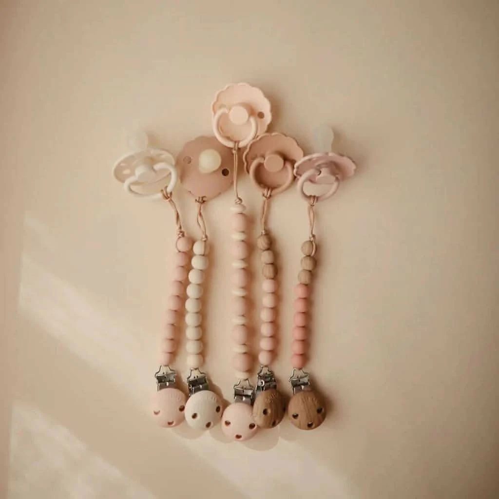The Mushie Luna Silicone Pacifier Clip offers durability, function, and simplicity to families on the go. Made from 100% food-grade silicone, our clip features a silicone clasp that brings a modern take to a traditional favorite. With two sizes of beads stacked in a simple pattern, the Luna clip is sure to become a favorite accessory for parents and littles alike. The clip is easy to clean and helps keep soothing items within reach for little ones.