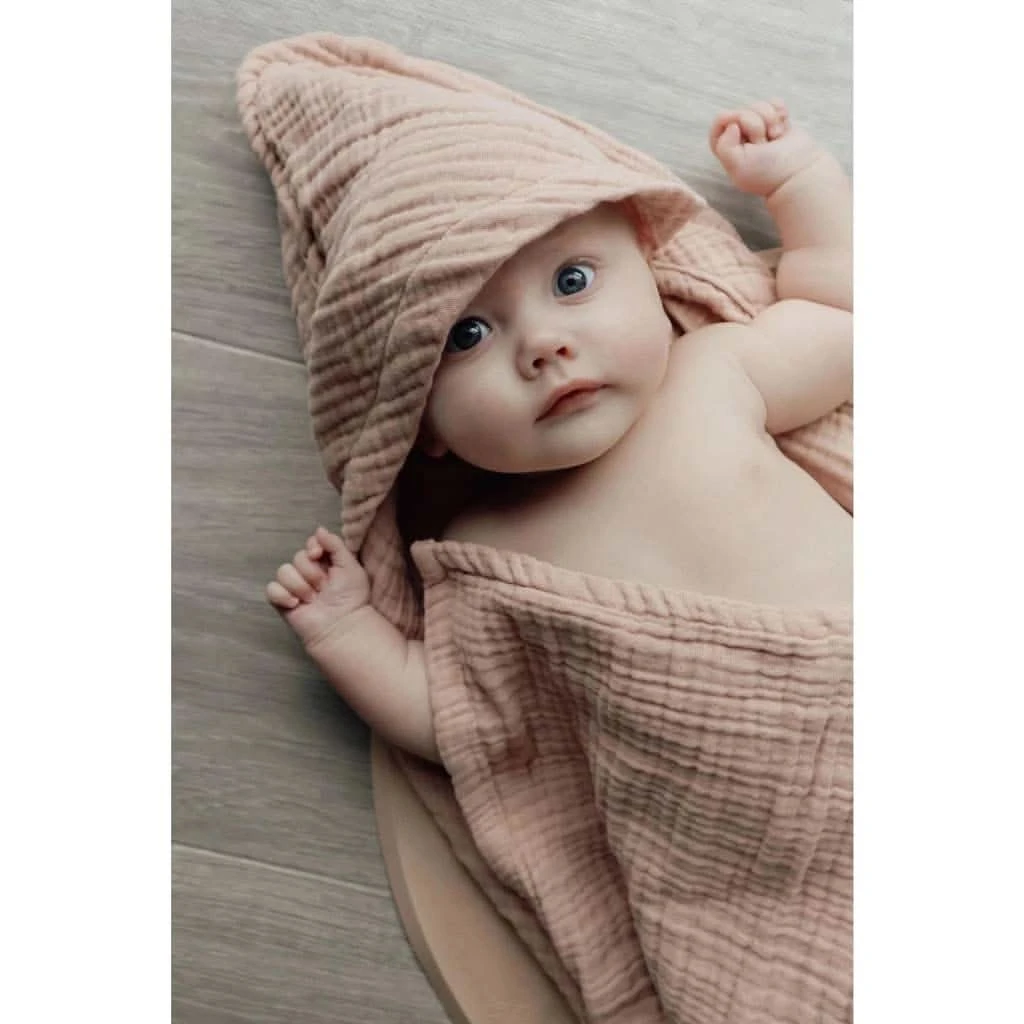 Natruba Muslin Baby Hooded Bath Towel. High-quality 4-layer 100% organic muslin. Produced in a GOTS certified factory. Soft and breathable, with great absorbency and durability.