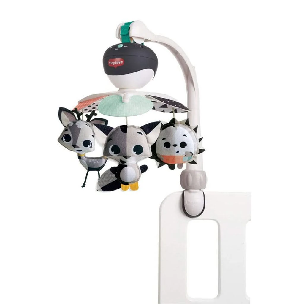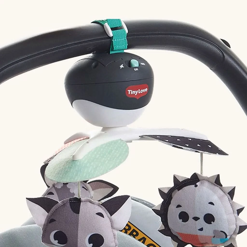 The Tiny Love Magical Tales Take Along Mobile is the perfect companion for parents and babies on the go. Designed to entertain, stimulate, and support skill development from birth to 5 months, this versatile mobile offers a calming and engaging experience through its cute, high-contrast characters and soothing melodies. It plays 30 minutes of continuous music with five different calming melodies, providing infants with a soothing atmosphere that enhances sensory development, visual perception, and early skill-building such as cognitive and motor skills.
